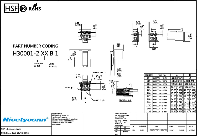 1. 3.0 mm Dual Rows Housing Wafer Black Colour