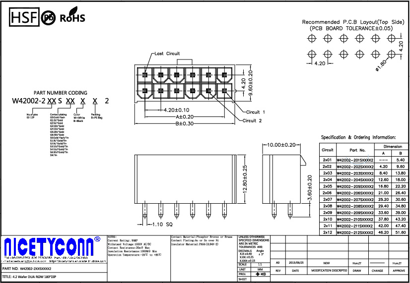 1. 4.2mm Pitch Dual Rows DIP Wafer Connector