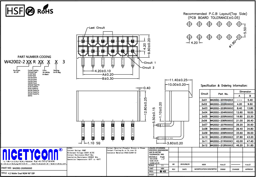 1. 4.2 mm Pitch 90 Degree Right Angle Wafer Connector