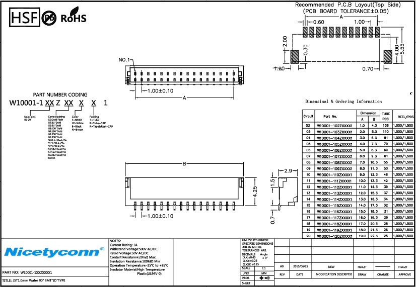 1. 1.0 mm Pitch 90 Degree SMT Wafer Connector