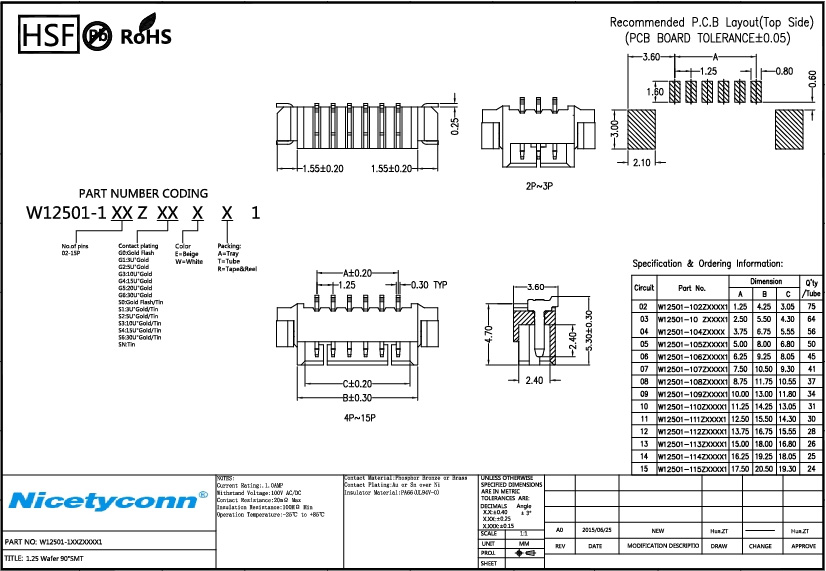 1. 1.25 Pitch 90 Degree SMT Wafer Connector