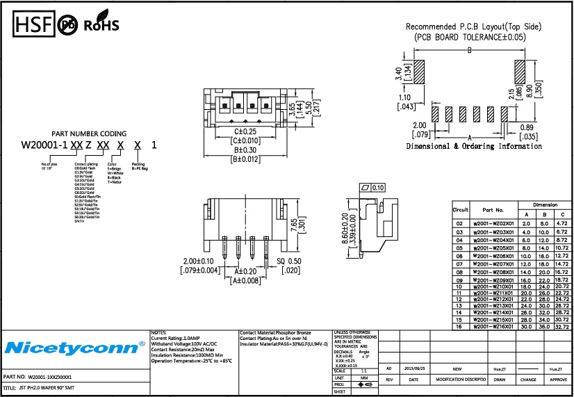 2.0 Pitch 90 Degree SMT Wafer Connector for PCB