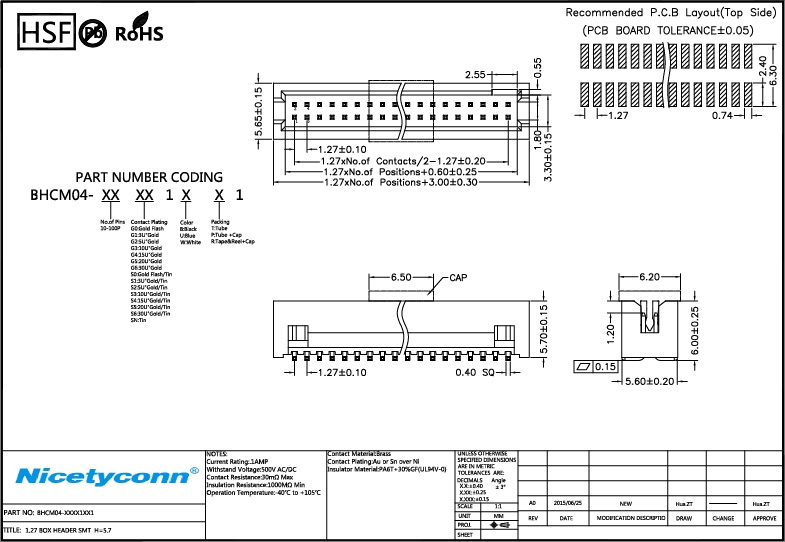 1. 1.27 mm Pitch SMT Type Box Header Plug