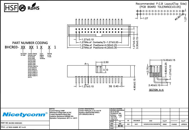 1. 1.27 mm Pitch Right Angle Box Header Plug