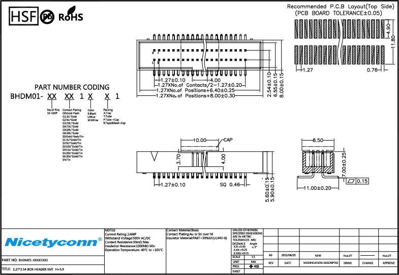1.27*2.54 mm Pitch SMT Box Header Plug