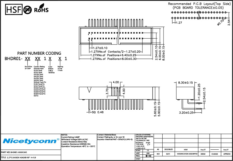 1. 1.27*2.54 mm Pitch Right Angle Box Header Plug