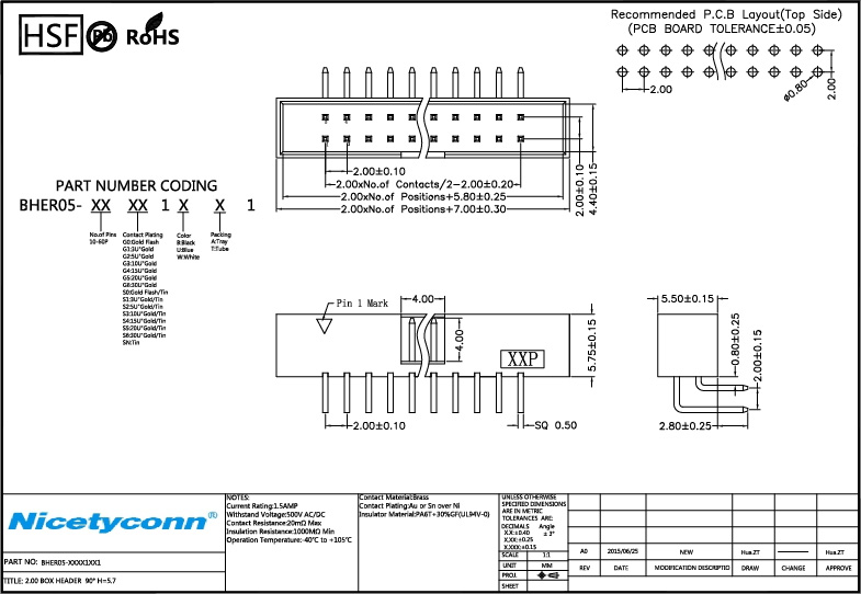 1. 2.0 mm Pitch Right Angle Box Header Plug H=5.70