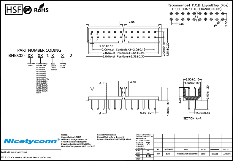 2.0 mm Pitch 180 Degree Samtec Short Type Box Header |