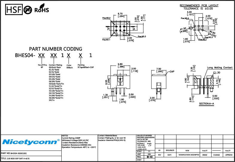 Contact Plating: Au or Sn over Ni |