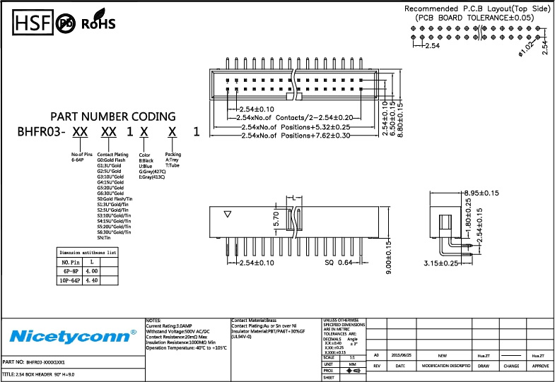 2.54 mm Pitch Right Angle Box Header H=9.0 |