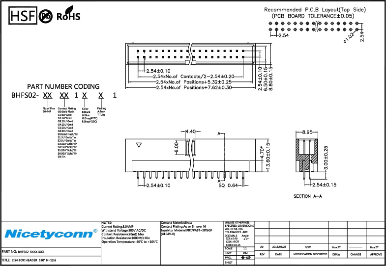2.54 mm Pitch 180 Degree Box Header |