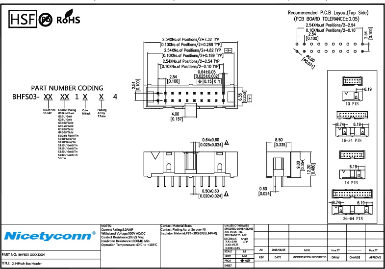 2.54 mm Pitch 180 Degree Box Header Connector with Window |