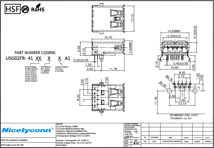 3.0 A/F 90 Degree DIP USB Plug |