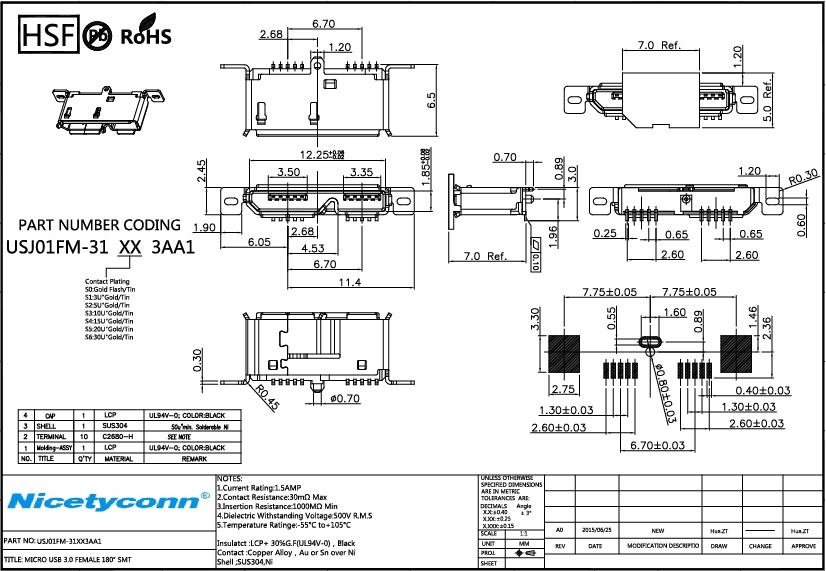Insulator: LCP+30% GF(UL94V-0), Black |