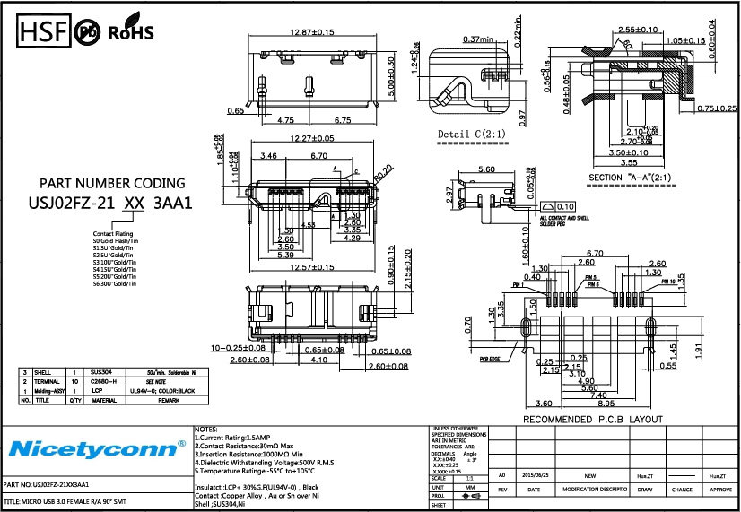 Insulator: LCP+30% GF(UL94V-0), Black |