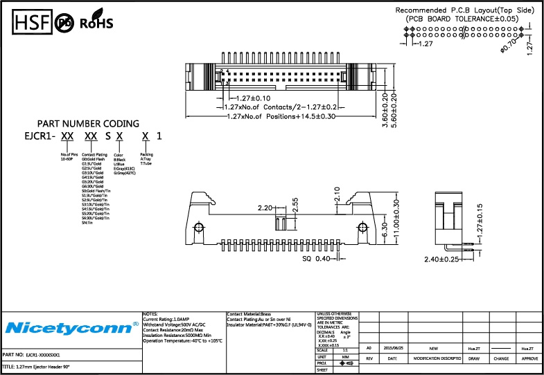 1. 1.27 mm Pitch Right Angle Ejector Header