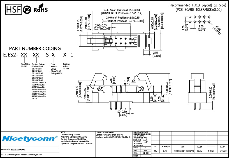 2.0 Pitch 180 Degree Samtec Type Ejector Header