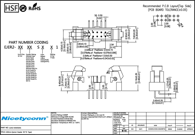 1. 2.0 mm Pitch S Type Right Angle Ejector Header