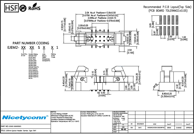 1. 2.0 mm Pitch SMT Samtec Type Ejector Header