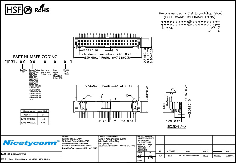 1. 2.54 mm Pitch SMT Metal Latch Ejector Header