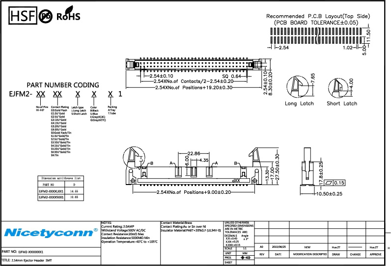 1. 2.54 mm Pitch SMT Type Ejector Header Connector