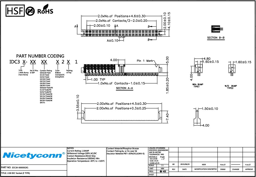 Insulator Material:PBT+30%G.F(UL94V-0) |
