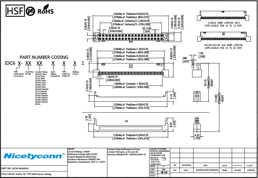 2.0 mm Pitch M Type IDC Socket Connector with Ramp Locking |