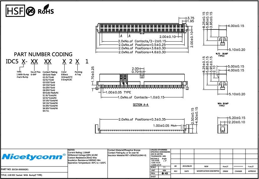 2.0 mm Pitch F Type IDC Socket Connector with Bump