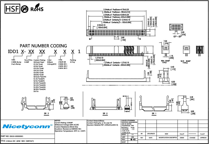 Contact Plating:Au or Sn over Ni