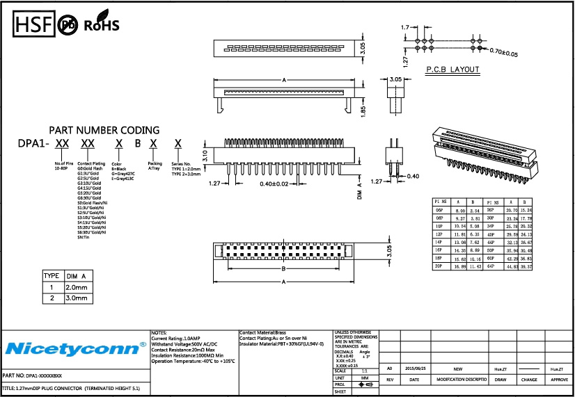 1. 1.27 mm Pitch DIP-Plug Connector