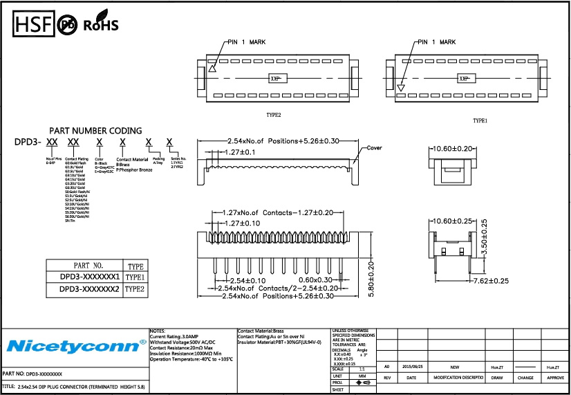 Insulator Material:PBT+30%G.F(UL94V-0)