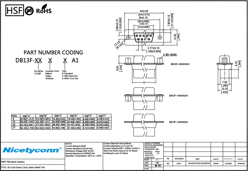Insulator Material: PBT+30%G.F (UL94V-0) |