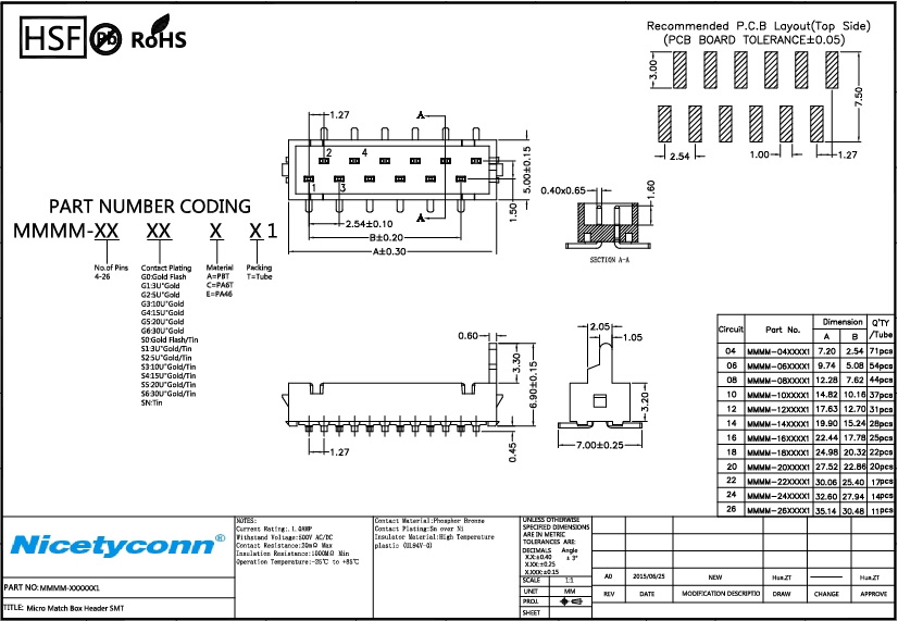 Contact Plating: Sn over Ni |