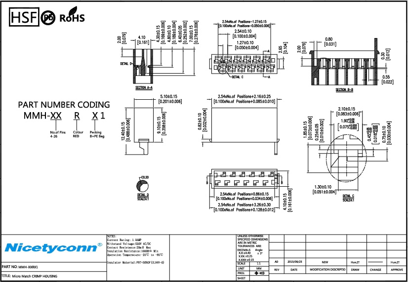 1. Micro Match Crimp Housing Current Rating 1.0 AMP
