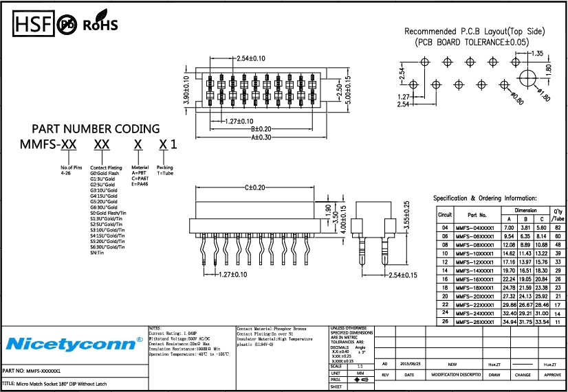 1. 180 Degree DIP Micro Match Socket Plug Without Lat