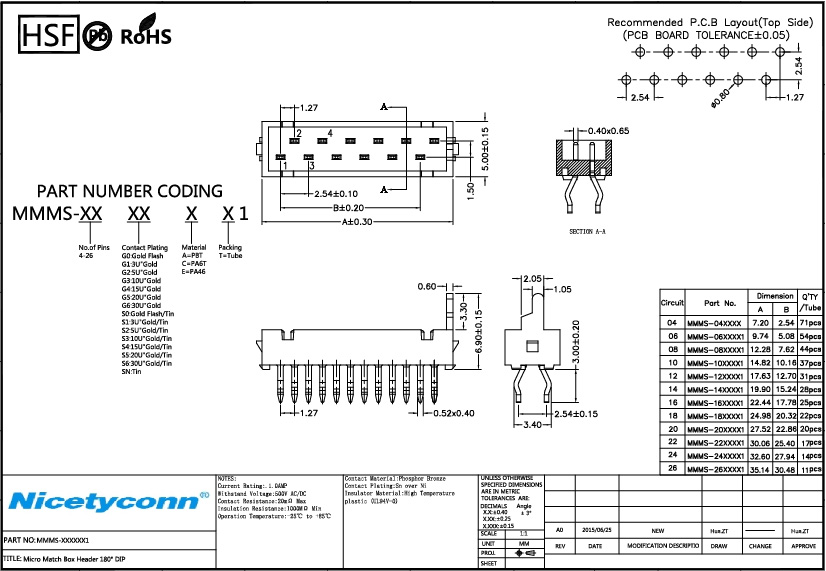 Contact Plating: Sn over Ni |